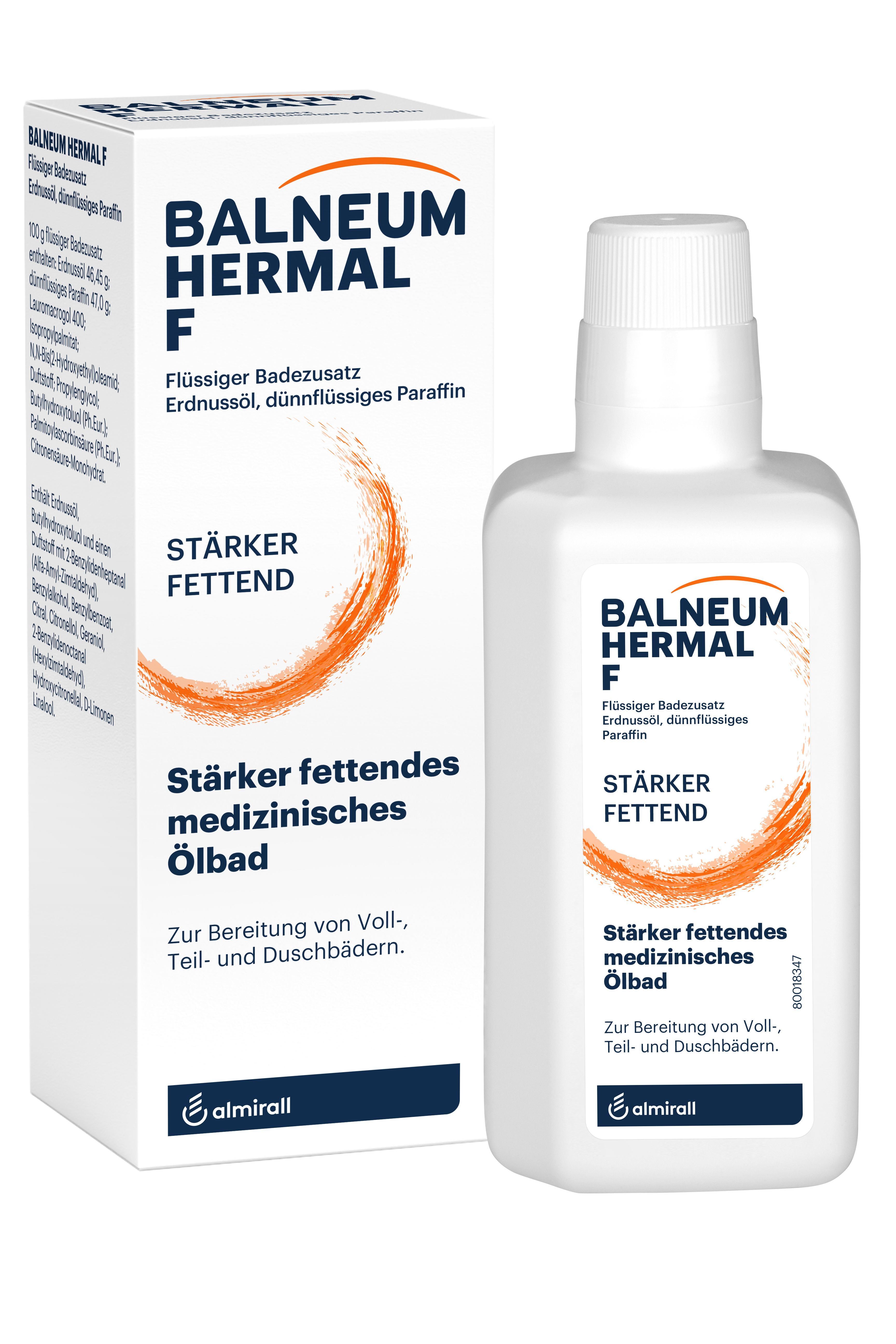 BALNEUM HERMAL® F: Zur unterstützenden Behandlung bei trockener, schuppender, juckender und empfindlicher Haut wie z. B. Neurodermitis (atopischem Ekzem), Psoriasis oder Ichthyosis.
